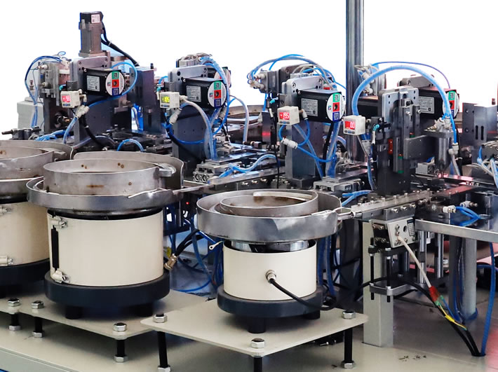 浙江金豹自動化有限公司坐落于享有“電器之都”之稱的樂清市,專業從事自動化生產設備的研發、生產、銷售??砂从脩粢蠖ㄖ品菢俗詣踊O備,為各類開關元件、插座元件廠家提供自動化生產解決方案和技術支持。 公司擁有先進的生產設備,經驗豐富的工程設計研發團隊,專業的生產隊伍,嚴格的產品檢驗制度,確保產品的穩定性,可靠性和長壽命。經過多年的研發并吸取國際機械技術之精華,采用先進的生產工藝,并達到國際同行先進水平。 本公司產品廣泛應用于機械、電子、汽車電氣、接插件、標準件、軸承、醫療品械、五金等行業。特別本公司設計制造的 輕觸開關裝配機、DC插座自動組裝機、按鈕開關裝配機、自動銀點鉚接機及船型開關自動組裝機,贏得了廣大客戶的高度評價。  …
